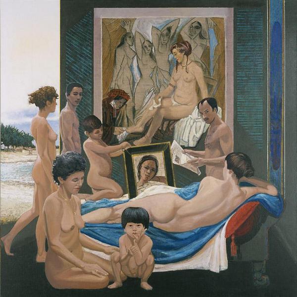 Expõe 29 pinturas em que mescla obras famosas, artistas renomados e cotidiano.